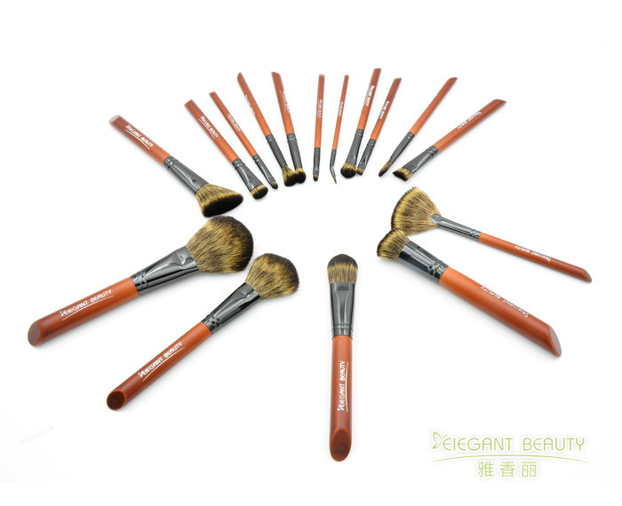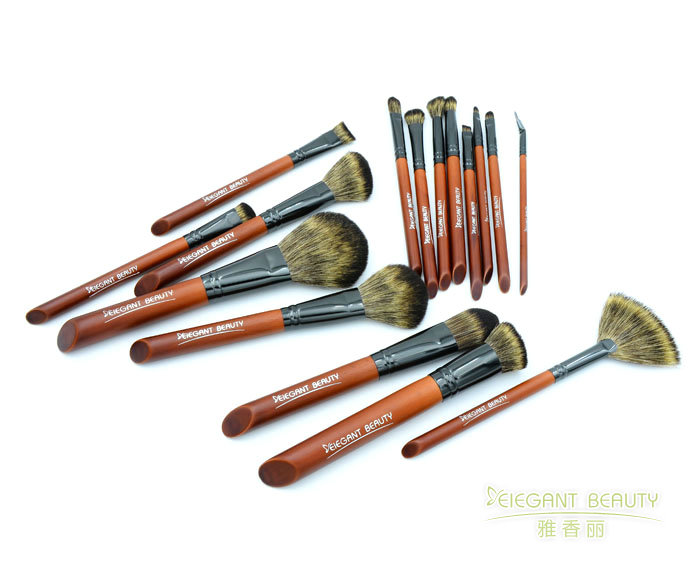產品說明:仿紅木尖形木柄 超柔軟尼龍毛 16支專業化妝套刷,滿足所有精致妝容所需,打造精致迷人妝容